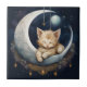 Kitten Dormindo No Crescente Objeto Moon Azulejo Cerâmico
