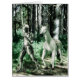 Um cavaleiro conduz o cavalo pelo bosque verde.