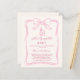 A soft ivory colored background, decorated with a hand drawn pink bow. Personalize and add a name and party details.