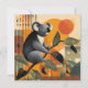 Koala sitting on a tree branch with colorful abstract art background.