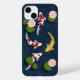Linda ilustração minimalista do vetor de peixes koi japoneses coloridos nadando entre os lírios de água de uma lagoa. Koi é uma carpa de variedade ornamental bem colorida domesticada no Japão.