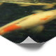 Uma lagoa de jardim cheia de beleza lírica de peixes koi, apresentada com impressões de água e cor em espiral. Pôster.