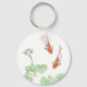 Uma pintura de aquarela Zen idílica de dois koi num lago koi com lírios de água branca e almofadas de lírios de água num chaveiro.