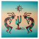 Brilhe sua casa com este único "Um dos tipos" Azulejo cerâmico do sudoeste de Kokopelli! Ele apresenta dois Kokopelli tocando flauta e dançando em volta de um cacto debaixo do Sol...num fundo Turquesa e Laranja Sunset! Este é um Design de Arte Original "Um dos Tipos" do Artista Kerry Miller.