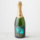 Personalize este rótulo de vinho espumante do sudoeste de Natal. Ele apresenta um Kokopelli tocando a flauta debaixo do sol em um fundo sudoeste em Turquesa, Laranja e Negro! Design De Arte Original Pelo Artista Kerry Miller.