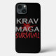 Capa de telefone com a Sobrevivência de Krav Maga projetada em vermelho e prata.