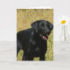 Cachorro preto Labrador Retriever em pé num campo de feno.