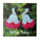 Azulejo cerâmico que apresenta uma foto das flores pequenas, vermelhas e brancas de Salvia, Lábios Quentes, também conhecida como Littleleaf Sage. Um design floral adorável! Selecione o tamanho do seu azulejo. Faz uma trivet de cozinha excelente!