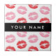 Padrão elegante, na moda e sofisticado com lábios vermelhos e cor-de-rosa sobre fundo branco. Presente moderno e moderno, perfeito para o amante da maquiagem em sua vida. Personalize adicionando o seu nome, apelido, monograma ou iniciais.