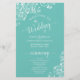 Estes programas de casamento são elegantes e saborosos, enquanto ainda são favoráveis ao orçamento. O design apresenta um padrão de rendas florais branco ornamentado em um fundo de cor aqua ou de cor clara de lacre. A tipografia apresenta uma caligrafia antiga em script, e há espaço para detalhes sobre a cerimônia, a festa noiva e um obrigado curto para você.