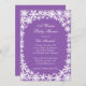 Flocos de neve deliciosos em fundo roxo decoram este convite para o Chá de fraldas de inverno. Se forem necessários itens de coordenação adicionais, entre em contato conosco em prettyfancyinvites@gmail.com com o seu pedido.