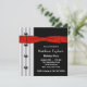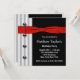 Convites de festa de aniversário para homens com laço preto vermelho e smoking branco e preto.