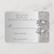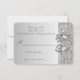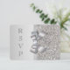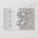 Elegantes cartões de RSVP de casamento personalizados em prata com um lindo padrão de lantejoulas prateadas impressas, um charmoso laço e fita prateados impressos e uma bonita joia de diamante brilhante impressa. Esses cartões planos sofisticados, glamorosos e da moda são decorados em ambos os lados. Convites lindos, elegantes, modernos e na moda. POR FAVOR, NOTE: São gráficos impressos planos - sem laços, lantejoulas ou partes em relevo reais. O texto, a fonte e a cor da fonte podem ser personalizados. Se precisar de ajuda para personalizar o seu produto, entre em contato comigo através da minha loja. Estou à disposição para ajudar. Tenho produtos correspondentes na minha loja.