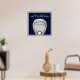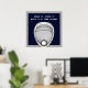 Poster de goleiro de lacrosse motivacional com palito de goleiro lacaio e citação criativa em um fundo marinho-azul.