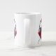 Jumbo Alguns dias, uma xícara de joe de tamanho normal simplesmente não vai funcionar. Quando precisar de uma dose extra de cafeína, pegue a sua caneca de café extragrande de Zazzle. Vai acomodar um cheio de 20 onças de Venti. Perfeito para sopa, cereal, sorvete ou chili também! Esta caneca gigante apresenta uma alça em forma de C para um corte confortável. Dimensões: Altura: 4,5" Diâmetro: 3,9" Capacidade: 20 onças de micro-ondas e lava-louças Forte, de cerâmica Cumpre ou excede os requisitos do FDA para a segurança das comidas e bebidas Impressos a pedido em Reno, NV Designer Dica: Para garantir o impressão de mais alta qualidade, note que a área de design personalizável deste produto mede 4" alto x 10,5".