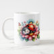 Jumbo Alguns dias, uma xícara de joe de tamanho normal simplesmente não vai funcionar. Quando precisar de uma dose extra de cafeína, pegue a sua caneca de café extragrande de Zazzle. Vai acomodar um cheio de 20 onças de Venti. Perfeito para sopa, cereal, sorvete ou chili também! Esta caneca gigante apresenta uma alça em forma de C para um corte confortável. Dimensões: Altura: 4,5" Diâmetro: 3,9" Capacidade: 20 onças de micro-ondas e lava-louças Forte, de cerâmica Cumpre ou excede os requisitos do FDA para a segurança das comidas e bebidas Impressos a pedido em Reno, NV Designer Dica: Para garantir o impressão de mais alta qualidade, note que a área de design personalizável deste produto mede 4" alto x 10,5".