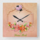 Quadrado É hora de mostrar sua arte favorita, fotos e texto com um relógio de parede quadrado personalizado do Zazzle. Este relógio de parede é impresso com cores vibrantes através do processo de impressão AcryliPrint®HD para garantir a qualidade de qualquer design, Peça este relógio de parede quadrado personalizado para sua casa ou dê aos amigos e à família como presente para um tesouro de eterno. Tamanho 10,75" x 10,75". Uma bateria AA necessária (não incluída). Adicionar fotos, trabalho de arte e texto