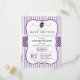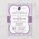 É uma garota! O chá de fraldas de joanilha roxa e preta elegante convida para faixas verticais roxas lavandas e padrões de bolinhas preto e branco com aparência formal vintage. Excelente para garotas joaninhas, insetos, chás de fraldas temáticos; perfeito para chás primavera. Convite de forma de colchete retrô.