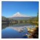 Uma bela tarde ensolarada no Lago Trillium, Oregon. Monte Hood em pé alto e refletindo na água com patos em primeiro plano. Outubro de 2018.