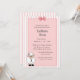 Um belo convite para garotas. O fundo cor-de-rosa e um arco cor-de-rosa dispararam este carneiro com um pacificador cor-de-rosa. Personalize com nosso modelo fácil de usar.