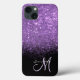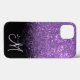 Elegante e design feminino, com glíster e luxuoso brilho roxo sobre um fundo preto sólido. Personalize o monograma com seus próprios detalhes.