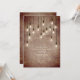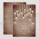 Luzes Vintage Edison penduradas no topo sobre um fundo de tijolo rústico desgastado. Convite de festa para todos os fins, adequado para aniversário, casamento, casa nova, inauguração, profissional, abertura, aniversário de casamento, jantar, etc.
