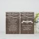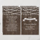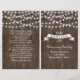 Corda de luzes e faixa de safra em madeiras velhas, no estilo de folhetos dobrados de verão, cerimônia de núpcias e programa de festas com faixa branca com contorno castanho sobre madeira marrom antiga. Esta design de casamento moderna e moderna de madeira com elementos de vintage faz parte de um conjunto de casamentos ou coleção, é totalmente personalizável e é perfeita para um casamento rústico ocidental no celeiro de verão ao ar livre. Note que não há madeira real apenas em imagens impressas. Você terá que dobrar no centro para ter um programa dobrado. Escolha apenas o tipo de papel de valor à medida que ele se dobra bem.