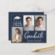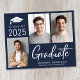O anúncio de graduação da Classe de 2025, moderno e azul escuro, apresenta 3 fotos e "Formando" em um roteiro branco ousado contemporâneo. Adicione o nome do formando e a escola ou universidade em tipografia branca simples.