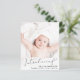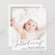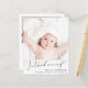Uma opção econômica para anunciar o parto do seu bebê, apresentando sua foto com "Apresentando" escrito em cima em um roteiro de na moda com uma batida cardíaca. Por baixo adicione o seu nome, data de nascimento e estatísticas de nascimento. No verso, adicione outra foto e mensagem personalizada.