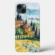 Landscape with town and cypress trees