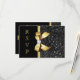 Cartões de resposta personalizados elegantes e personalizados em preto e dourado com uma bela imagem impressa preta brilhante com lantejoulas, joias, padrão de gemas, imagens de laços e fitas douradas brilhantes e lindas joias de brilho de diamantes digitais em um fundo preto clássico. POR FAVOR, NOTE: Estes são gráficos impressos planos - sem partes elevadas. Estes cartões de resposta planos clássicos, glamorosos e cheios de glamour são decorados / impressos em ambos os lados. Lindos, chiques, modernos e RSVPs modernos para qualquer evento: - casamentos, chás de bebê, chás de panela, festa de formatura, festa de aniversário de mulheres, festas de 16 anos, celebrações de quinceanera, etc. O texto, a fonte e a cor da fonte podem ser personalizados. Se precisar de ajuda para