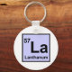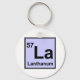Chaveiro com o símbolo químico e o número atômico do lantânio.