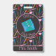 Um crachá personalizado de hall pass da sala com ilustrações de alguns lápis coloridos ao fundo e uma pilha de envelopes. Escolha se deseja um anexo (cordão ou clipe de metal ou nenhum). Confira a coleção para ver a série completa.