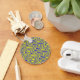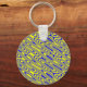 Este chaveiro apresenta um padrão abstrato azul esverdeado e amarelo. Se a observarem cuidadosamente, parece que está a mover-se.