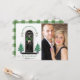 Com uma varanda frontal clássica decorada para as festas de fim de ano, com árvores de Natal encimadas por estrelas ladeando a elegante porta preta, uma coroa de pinheiro com laço de gingão rosa e lanternas encimadas com rosas e azevinho. No estilo Magnolia | casa de fazenda moderna | clássico elegante. 3 CORES DE XADREZ PARA A PARTE DE TRÁS ESTÃO NO DESIGN (verde escuro como mostrado, preto ou rosa - basta editar e ocultar as imagens que não deseja). Adicione o retrato de sua família para um cumprimento de Natal personalizado!