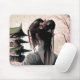 Gera computador Design einer Geisha. Abbildung einer Frau mit einer hübschen Frisur und Blüten im Haar welche einen Kimono trägt in einem schlichten Design mit leichten Linien. Japoneses Design im AI - Estilo de Meia-Viagem. Rote Farbornamente verleihen dem Bild das gewisse etwas.