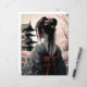 Computer generiertes Design einer Geisha. Abbildung einer Frau mit einer hübschen Frisur und Blüten im Haar welche einen Kimono trägt in einem schlichten Design mit leichten Linien. Japanisches Design im AI - Midjourney Style. Rote Farbornamente verleihen dem Bild das gewisse etwas.
