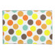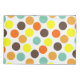 Esta pilha tem um design geométrico de pontos azuis, laranja, amarelo e castanho.