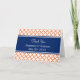 Cartões de agradecimento de casamento com padrão laranja quatrefoil e azul real. Um padrão simples e elegante. O fundo é branco.