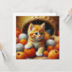 Um gatinho listrado de laranja doce brincando num cesto de bolas de fio de laranja e branco.