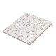 Este azulejo cerâmico apresenta um padrão falso terrazzo com pequenos speck em tons laranja e marrom sobre fundo branco. Personalize-o com as suas próprias cores clicando em Editar design.