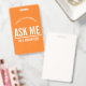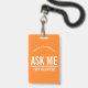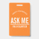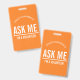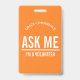 Laranja Pergunte-me Eu sou um crachá de voluntário