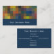 Um cartão de visita para muitos tipos de negócios, com quadrados em laranja queimado, castanhos e marinhos, com letras brancas sobre fundo azul marinho. Totalmente e facilmente personalizável.