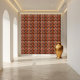 Experimente a rica textura visual deste azulejo africano simétrico e laranja queimado. A interação entre matizes quentes e o padrão equilibrado e repetitivo cria uma sensação de profundidade e interesse visual. Inspirado pelas intrincadas tradições teceloras dos têxteis africanos, este azulejo acrescenta uma camada de riqueza cultural e sofisticação artística à sua casa. Perfeito para criar um ponto focal ou adicionar detalhes sutil, mas impactante, a qualquer sala.
