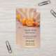 Cartão de visita com um elegante design com laranjas e uma flor de gerbera em um fundo moderno de rosa dourado. A flor do dorso pode ser apagada se não for necessário. Bonita para um terapeuta nutricional ou dietista profissional.