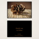 Este cartão comercial de artista apresenta uma composição muito simples, ainda viva, de um cone de laranja-marrom-ouro solteiro ainda acoplado ao seu galho sobre uma palha contra fundo marrom-chocolate. O detalhe requintado desse pequeno cone se parece com um rosa de madeira. Adorável para o Natal e o feriado.