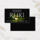 Uma gota de água solteiro é colocada numa folha verde neste cartão de visita moderno de Reiki.