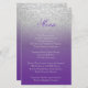 Menu jantar / Almoçar. Roxo do Dia do Casamento Moderno e Literatura Prateada. Produtos correspondentes disponíveis - 📌 Se você precisar de mais personalização, clique no botão "Clique para Personalizar mais" ou "Personalizar ou Editar Design" e use nossa ferramenta design para redimensionar, girar, alterar a cor do texto, adicionar texto e muito mais. ⭐ Este Produto é 100% Personalizável. Gráficos e/ou texto podem ser adicionados, excluídos, movidos, redimensionados, mudados, rodados etc.. ⭐ 99% dos meus designs na minha loja são feitos em camadas. Isso facilita o redimensionamento e a movimentação de gráficos e textos para que cada produto seja ajustado perfeitamente. 📌 (Não se esqueça de redimensionar ou mover gráficos, se necessário, antes de fazer pedidos) Você também pode "TRANSFERIR DESIGN" em outros produtos Zazzle e ajustar o design para o ajustado na maioria dos itens do Zazzle. (botão no lado direito da página) Este design é feito com vetor de alta resolução e/ou gráficos digitais para um impressão profissional. 📌 NOTA: (ISTO É UM IMPRESSÃO. Todos os designs de produto Zazzle são "impressões", a menos que indicado em "Sobre este produto" no lado esquerdo desta página) A design será impressa "EXATAMENTE" como se vê na tela e no produto...portanto, certifique-se de que, ao fazer suas alterações no redimensionamento de qualquer dos gráficos ou textos que ele ajustado nas áreas corretamente, e que sua ortografia e texto seja como você gosta que seja em tamanho, cor e fonte. Se você tiver alguma pergunta sobre o "SOMENTE DESIGN" ou precisar de ajuda, entre em contato comigo no ✉ siggyscott@comcast.net ou visite o link da minha loja: https://www.zazzle.com/store/designsbydonnasiggy (Copiar e Colar) Eu terei todo o prazer em ajudar. 📌 TODAS AS OUTRAS PERGUNTAS (remessa, reembolso, a impressão não está correta, o produto em si, etc..), contacte a Zazzle ou o fabricante ⭐ diretamente ⭐. Obrigado pelo apoio e parada na minha loja - DesignsbyDonnaSiggy. © Donna Siegrist ⭐ ⭐ ⭐ ZAZZLE promete 100% de satisfação. Se você não o ama, Zazzle o devolverá! ⭐ ⭐ 1-888-8ZAZZLE (1-888-892-9953) Horário telefônico: Seg - Sex: 9H - 5PM (12PM - 8PM ET)