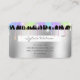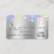 Seja uma verdadeira moça Lash com este hológrafo e cartão de crédito prateado moderno, estilizado cartão de visita com lascas e cores unicórnicas com efeito de gotejamento! Ideal para pequenas empresas, butiques, chibatadas, indústria de beleza...