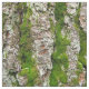 O tecido à moda caracteriza um teste padrão de repetição corajoso do musgo no latido. O latido de pinheiro do envelhecimento desvaneceu-se e perdeu-se algumas de suas camadas ultraperiféricas. O musgo verde vibrante está crescendo em sulcos verticais no latido. A fotografia macro mostra as listras alternas do latido e do musgo assim como a textura de cada um. O latido é mergulhado, escamoso, com gradação finas da cor: cinzas, marrons, e mesmo verde pálido. O musgo é compreendido dos cabelos finos curtos inumeráveis, como se a árvore quis alguns destaques verdes da pele.